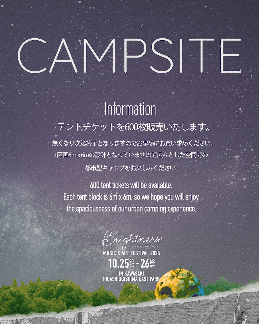 テント持ち込みは「Campsite Ticket」ご購入者のみ可能です。